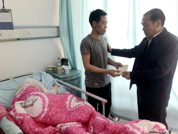日前,甘肃省测绘工程院帮扶的陇南市武都区洛塘镇楼房村村民马红利因患有癫痫病,正在兰大二院接受治疗。在得知马红利的病情后,该院领导十分重视,发动职工捐款,奉献爱心,并得到广大职工的积极响应,纷纷伸出援助之手,短短几天时间,共募集爱心捐款9980元,其中现金捐款8600元,水滴筹捐款1380元。病魔虽无情,人间有真爱。虽然这笔捐款对于患者家庭要承担的高额医疗费用是微不足道的,但它承载的是帮扶单位全体职工沉甸甸的关爱,带去的是大家满满的祝福与希望。 4月23日,省测绘地理信息局副局长牟应录前往医院看望,并将捐到的爱心捐款送到病人手中,祝愿她尽快康复,早日恢复正常生活。患者马红利和家属十分感动,对帮扶单位的支助和关怀表示深深感谢。 | |||||||||||||