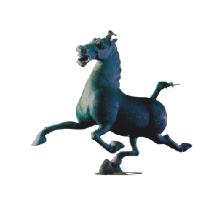 雷台是举世闻名的稀世珍宝、中国旅游标志“马踏飞燕”的出土地,位于甘肃武威城区北关中路,占地面积12.4万平方米。据史料记载,雷台为前凉(公元301年─375年)国王张茂所筑灵钧台。《资冶通鉴》中记载:为东晋元帝大兴四年(公元321年)始筑“周轮80余堵,基高9仞”。现雷台保存基本完好,长106米、宽60米、高8.5米。台上有明清时期的古建筑群雷祖殿、三星斗姆殿等10座,其建筑雄伟、规模宏大。 1969年在雷台下发现一处东汉晚期(公元186─219年)的大型砖石墓葬, 墓道长19.34米,墓室分前、中、后三室及左右耳室各三处,出土有金、银、铜、铁、玉、骨、石、陶器等文物231件,在出土文物中最突出的是铸造精致的99件铜车马仪仗俑,艺术价值最高的是一匹铜奔马。铜奔马又称马踏飞燕,或称马超龙雀,呈发绿古铜色,马高34.5厘米,长45厘米,重17.5千克,马形神兼备、气韵生动、矫健剽悍、无拘无束、呈飞奔状,三足腾空、昂首扬尾、张口嘶鸣、右后足巧妙地轻踏在一只展翅奋飞回首惊视的飞鸟背上,既改变了传统天马的造型手法,又符合力学平衡原理,并赋予了奔马以旺盛的生命力,使其具有强烈的震撼力。大胆的想象和天才的雕塑手法,为世界留下了一件罕见的艺术品。铜奔马蕴含着极高的艺术、科学和历史价值并具天马文化内涵,并且铸造技巧精湛,堪称青铜艺术极品。 1983年,雷台汉墓出土的国之瑰宝铜奔马被中国国家旅游局定为“中国旅游标志”。  |